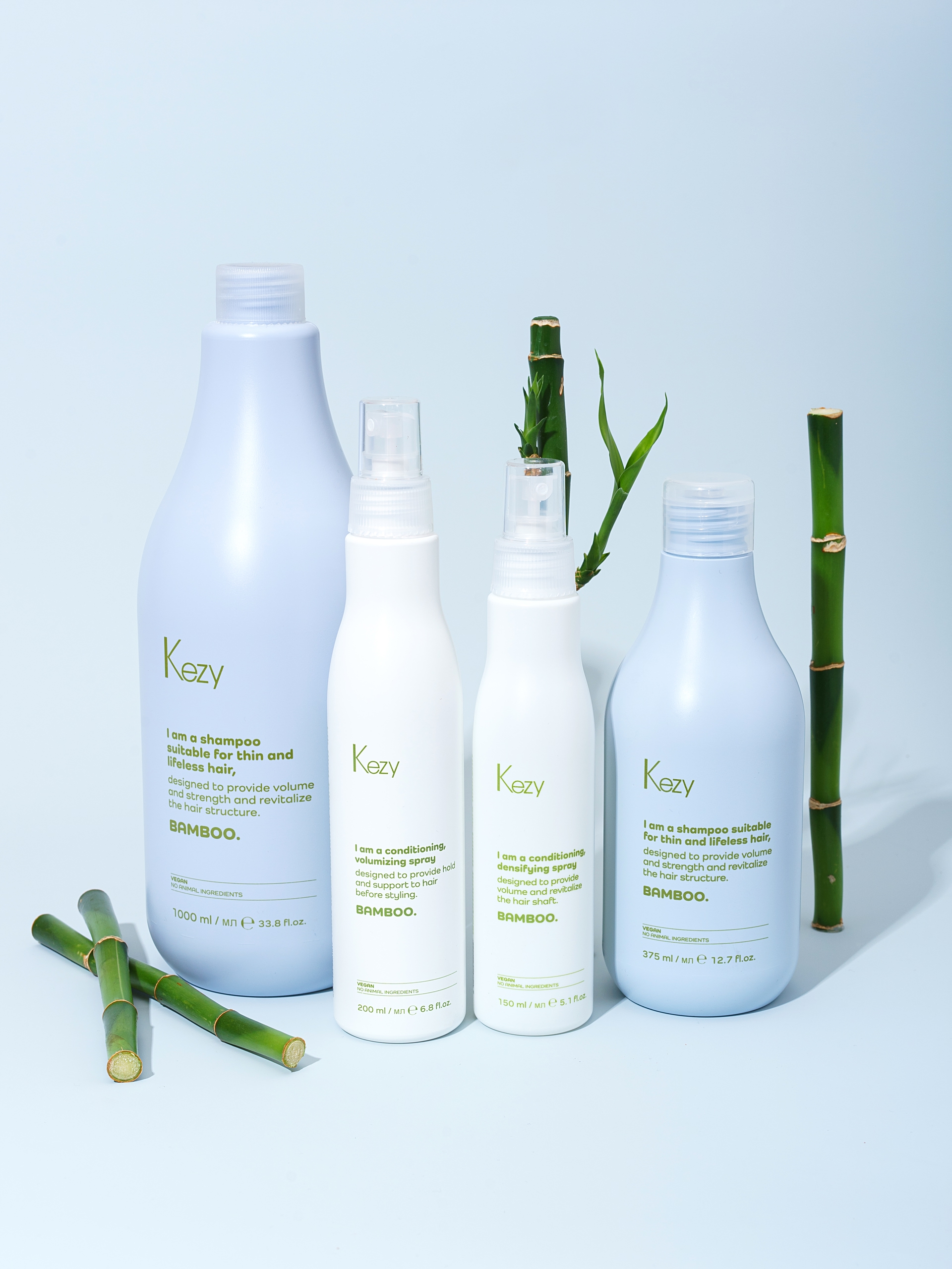 С натуральным экстрактом бамбука мгновенно уплотняет тонкие ломкие волосы и придаёт им плотность от самых корней, не утяжеляя.