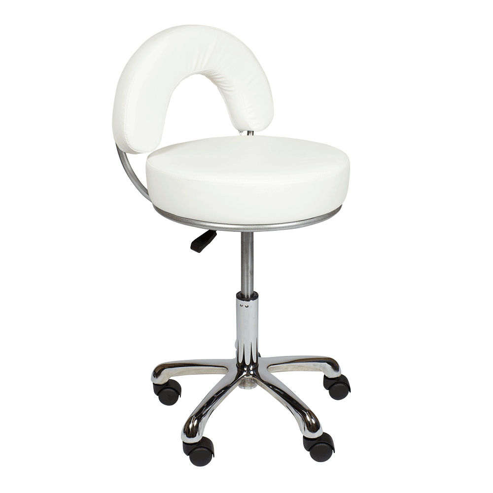Стул мастера МД-2118 Производитель: Компания МЭДИСОН. Комплектация: сиденье на металлическом каркасе, спинка, основание на колесах, пневматика. Характеристики стула мастера МД-2118: Каркас: из металла, окрашен в цвет «металлик». Обивка сиденья и спинки: износостойкий поролон, обтянут качественной экокожей. Основание: металлическое пятилучье с хромированным покрытием на черных пластиковых колесах. Регулирование высоты: газлифт. Практичный и стильный стул мастера МД-2118 выполнен в оригинальном дизайнерском решении. Мягкие элементы изготовлены из современных долговечных материалов – плотного поролона и экокожи высокого качества. Комфортабельное мягкое сиденье в форме круга установлено на металлический каркас, окрашен в нейтральный цвет «металлик». Сиденье можно регулировать по высоте с помощью надежного газлифта (пневматики). Дополнительное удобство обеспечивает эргономичная спинка с мягкой обивкой, которая помогает снять напряжение со спины.В комплектацию стула входит хромированное пятилучье на коле