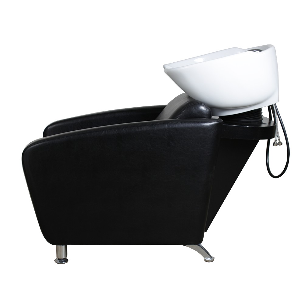 Характеристики парикмахерской мойки МД-123 без регулировки ножной части: Раковина: белая керамическая, или средних размеров. Каркас мойки: из металла, который покрыт защитной порошковой краской черного цвета. Кресло: сиденье, спинка и подлокотники обшиты качественной экокожей (больше 60 цветов на Ваш выбор), хромированные ножки. Комплектующие к раковине: хромированный кран, душик и слив. Парикмахерская мойка МД-123 (без регулировки ножной части) выполнена в классическом стиле, благодаря чему отлично впишется практически в любое дизайнерское решение интерьера Вашего бьюти салона. В базовую комплектацию входит белая керамическая раковина средних размеров с набором необходимой сантехники. По желанию Вы можете выбрать такую же раковину из черной керамики или глубокую, черного или белого цвета. Для индивидуального удобства клиентов наклон раковины регулируется. (ДхШхВ): 127 х 66 х 94,5 смВ НАЛИЧИИ