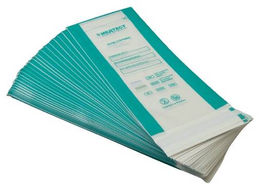 Медицинское изделие Пакет комбинированный плоский самоклеящийся ПСПВ-СТЕРИМАГ, типоразмер: 75 х 150 мм (РУ № РЗН 2019/8832 от 23.08.2019) соответствует ГОСТ ISO 11607-2011. Пакет комбинированный представляет собой прямоугольный конверт, изготовленный из сорта специальной бумаги (непрозрачная сторона) и прозрачной полимерной пленки (прозрачная сторона), соединенные между собой клеевым швом, с нанесенной соответствующей маркировкой, а также с химическими индикаторами-свидетелями первого класса по ГОСТ ISO 11140-1-2011. Вид бумаги, используемый для производства пакетов, изготовлен из особо чистой целлюлозы, обладающей барьерными свойствами, обработанной с целью придания влагопрочности. Методы стерилизации: паровой, воздушный, газовый (с применением окиси этилена, формальдегида), радиационный. Гарантийный срок годности – 5 лет. Хранение рулонов должно осуществляться в отапливаемом помещении при условиях, соответствующих условиям хранения 1 по ГОСТ 15150 при температуре от +5°С до +40°С и относительной влажности