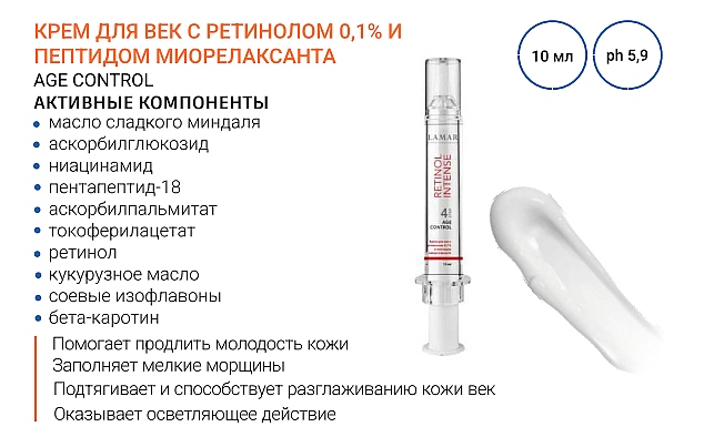 LAMAR Крем для век с ретинолом 0,1% и пептидом миорелаксанта AGE CONTROL, 10 мл