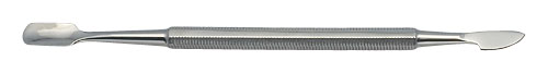 Лопаточка с закругленной функциональной частью применяется для отодвигания кутикулы, другая сторона инструмента предназначена для чисткисвободного края ногтя и его боковых частей.