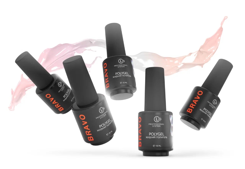 Bravo PolyGel Жидкий полигель -сочетает в себе свойства каучуковой базы и жесткого геля, поэтому подходит для всех типов ногтевых пластин. Предназначен для моделирования (наращивания) любой длины, укрепления и ремонта ногтевой пластины, так как обладает всеми техническими характеристиками полигеля. Основные характеристики: - жесткий и прочный, подходит для всех типов ногтей - легко наносится и самовыравнивается, не течет - идеален для работы в технике "без опила" - не дает усадку в носке - бескислотный (pH 6), формула 9-free - полимеризуется в UV, LED и гибридных лампах