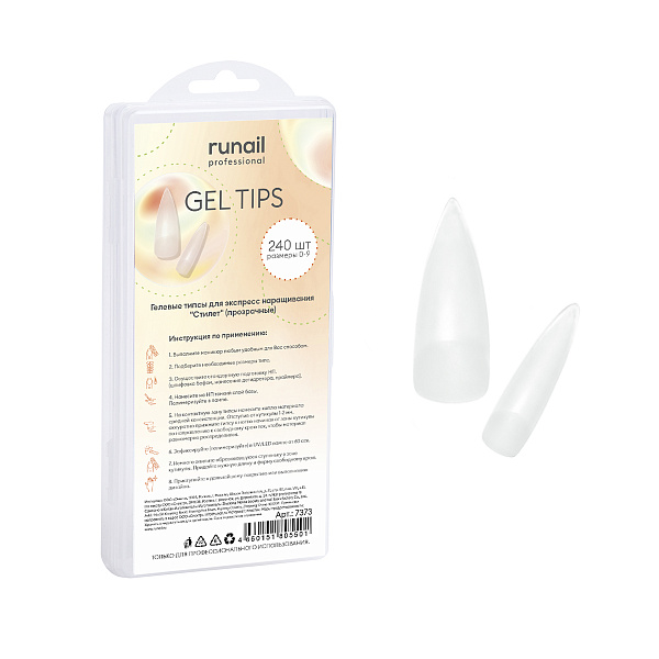Типсы гелевые RuNail для экспресс наращивания "Стилет" прозрачные, 240 шт
