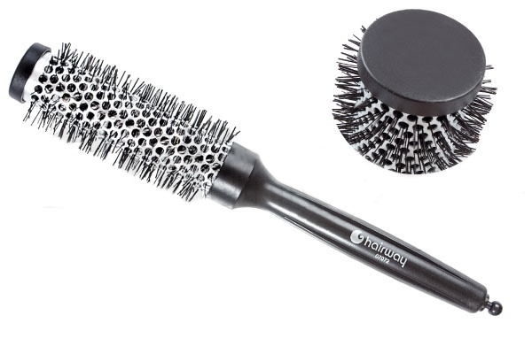 Термобрашинг на пластиковой основе с алюминиевой втулкой и нейлоновой щетиной. Разделитель прядей. Антистатик.