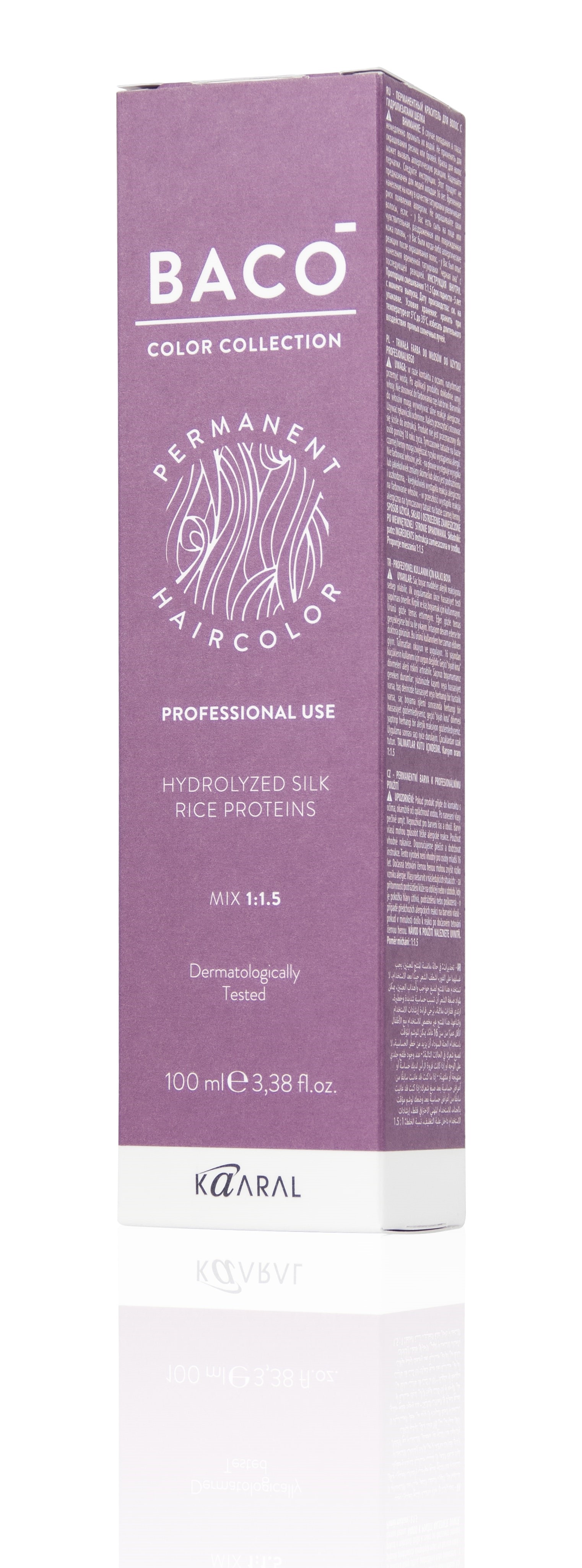 Краситель Kaaral Baco Permament Haircolor with Hydrolized Silk – это инновационный краситель для волос, сочетающий в себе последние достижения в области смены цвета локонов и удивительно бережное отношение к прядям в течение всей процедуры. Уникальная формула, основанная на технологии Micro Pigment Technology, обеспечивает стойкое, равномерное и насыщенное окрашивание, наполняет цветом седые волосы. Благодаря минимальному размеру, молекулы красящего пигмента с легкостью проникают в структуру волос, надежно закрепляются в кортексе и дарят локонам удивительно яркий сияющий цвет. Окрашивание и уход – это основная концепция итальянского бренда Kaaral. Поэтому состав краски обогащен гидролизованным натуральным шелком – источником 17 аминокислот, которые достраивают поврежденный структуру волос и придают прядям потрясающую гладкость, силу и блеск.