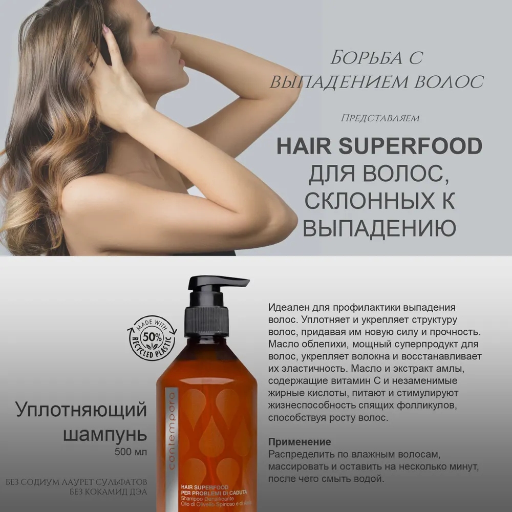 BAREX СОNTEMPORA Уплотняющий Шампунь с маслом облепихи и маслом амлы, склонных к выпадению 500 мл.