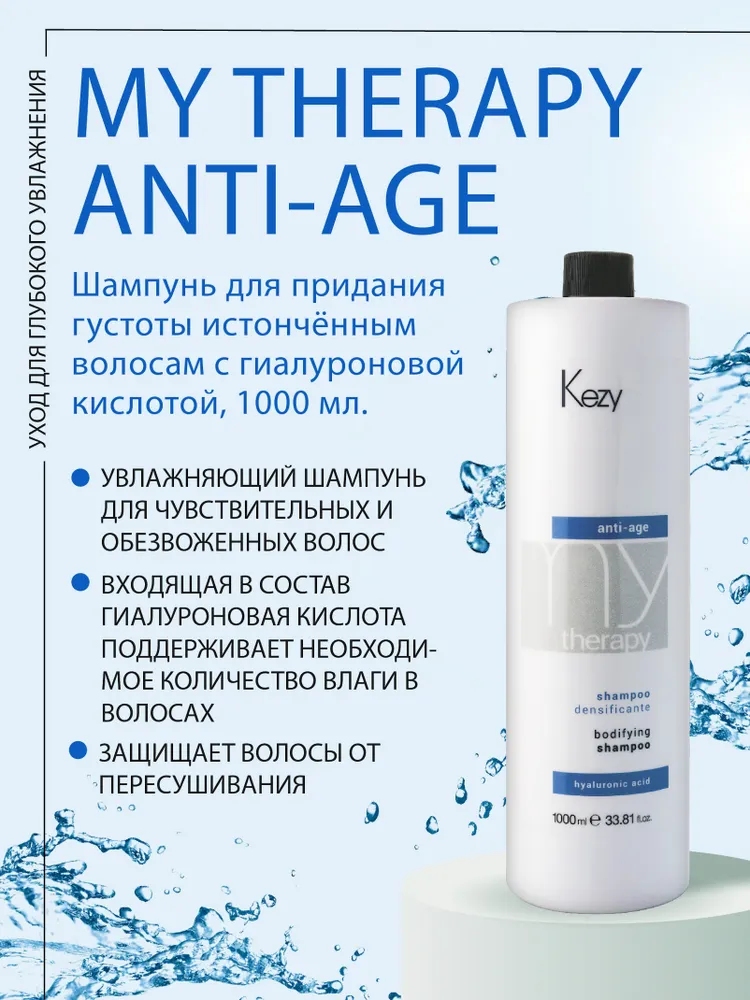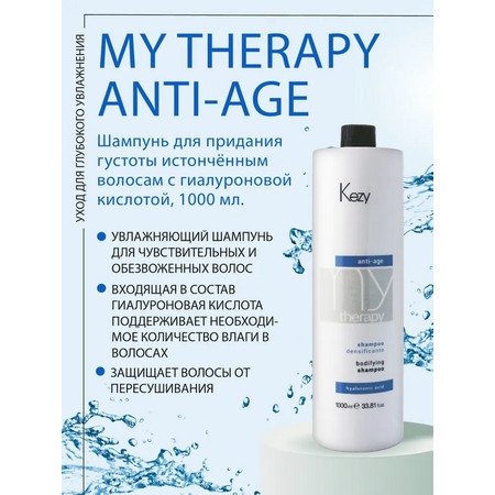 KEZY My Therapy Шампунь для придания густоты с гиалуроновой кислотой, 1000 мл.
