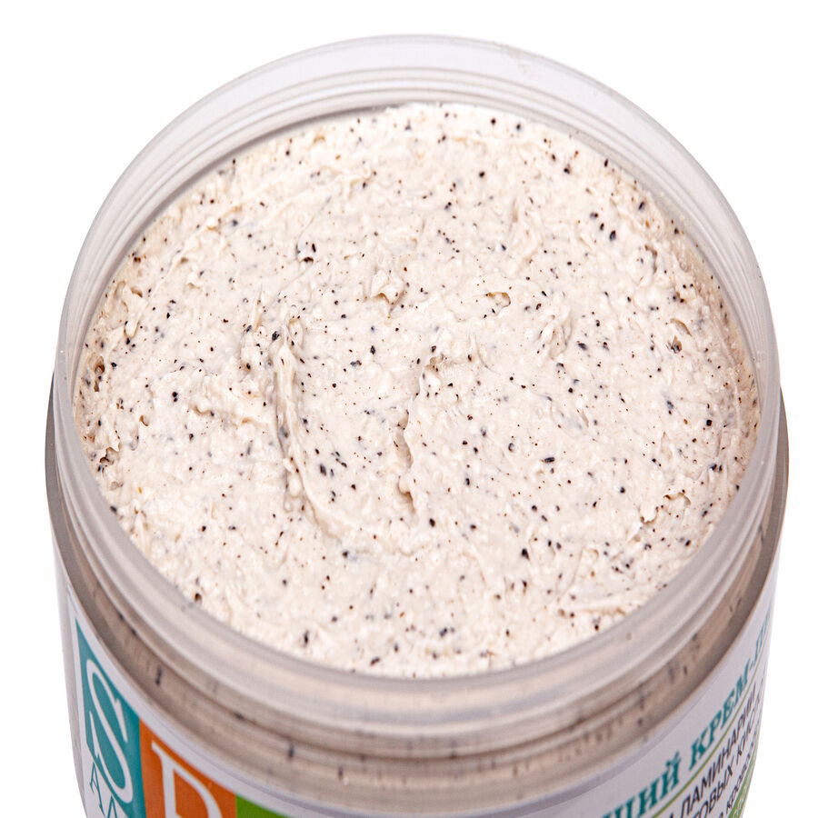 Действие: Глубокое очищение, обновление кожи, усиление кровообращения Пилинг-крем с двумя видами гранул, мягко очищает кожу, удаляя омертвевшие клетки. Благодаря мельчайшим, сферическим частицам полимера, отшелушивание рогового слоя кожи проходит нежно и деликатно. Гранулы натурального скраба – персиковой косточки, специально обработанные так, чтобы не травмировать кожу, создают массажный эффект, стимулируя микроциркуляцию крови. Благодаря наличию в составе экстракта ламинарии, богатого витаминами, протеинами и минеральными солями, пилинг-крем оказывает эффективное антицеллюлитное действие даже на хорошо заметных стадиях целлюлита. Комплекс фруктовых кислот ослабляет связь между чешуйками рогового слоя, облегчая их удаление, улучшая процессы естественной регенерации. Кожа разглаживается, ее структура укрепляется и улучшается, освежается цвет кожи. Активный комплекс: экстракт ламинарии, трансдермальный переносчик кислорода, комплекс фруктовых кислот, персиковое масло, масло ши, пчелиный воск, гиалуроновая кисл