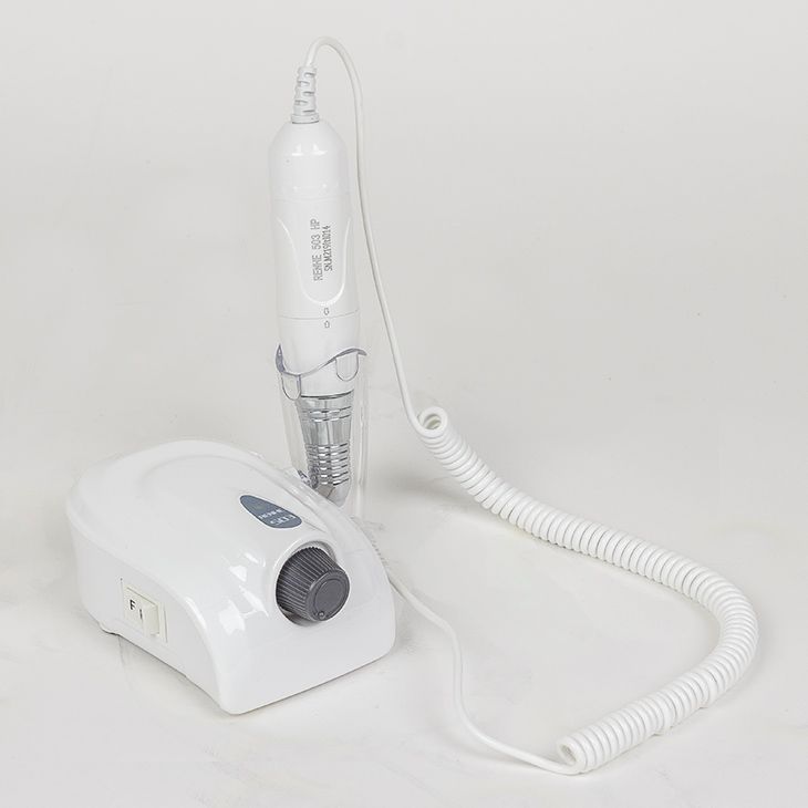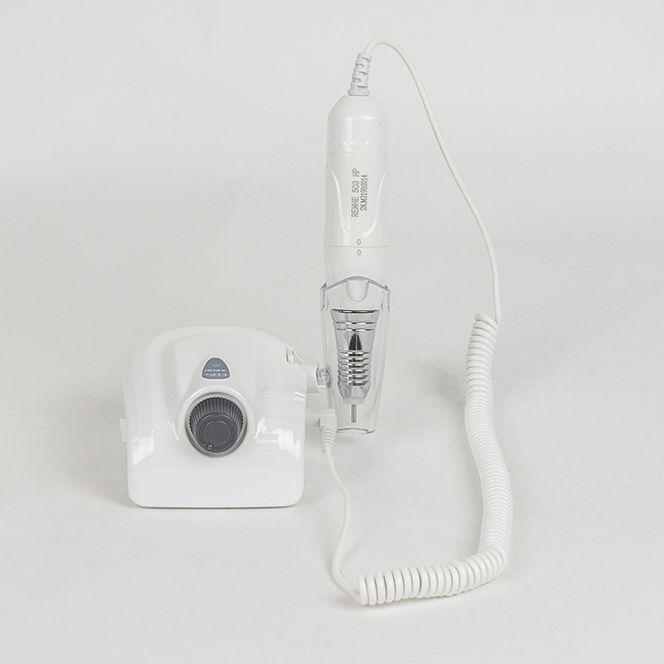 Аппарат для маникюра Renhe 503 без педали, без сумки Производитель: RenheКомплектация: блок, ручка с микромотором, держатель наконечника, инструкция Характеристики: Корпус: пластик Мощность: 35 Ватт Максимальная частота оборотов: 20 000 в минуту. Вес наконечника: 105 грамм Питание: 110/220В Цанговый зажим: 2,35 мм («Евро-стандарт») Крутящий момент: 1.8 Н.см Цвет: черный, белый Гарантия: 2 года Аппарат для маникюра Renhe 503 аккуратно удаляет кутикулы, обрабатывает, а также шлифует ногти. Компактное маникюрное оборудование идеально подойдет для домашнего применения и салонам с невысокой загруженностью. Аппарат для маникюра – небольшое устройство, которое состоит из блока питания и ручки с микродвигателем. На ручке есть цанговый зажим, в котором фиксируется фреза. Кнопки смены скорости и реверса находятся на корпусе блока питания. С боковой стороны блока предусмотрен держатель для ручки. Мощности в 35 Ватт и 20000 оборотов в минуту достаточно для работы с натуральными, акриловыми и гелевыми по