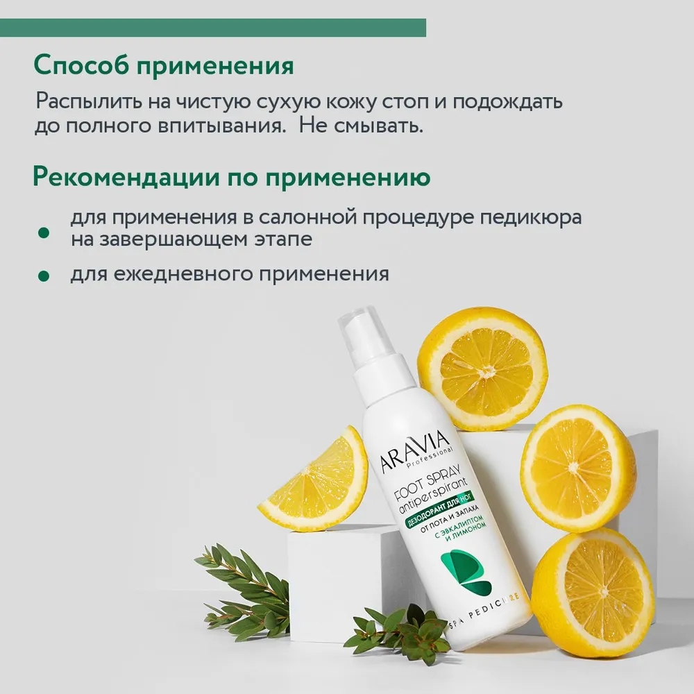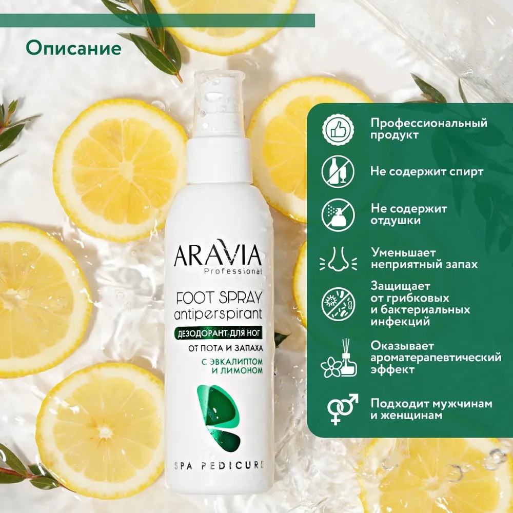 Aravia Дезодорант для ног от пота и запаха с эвкалиптом и лимоном, 150 мл