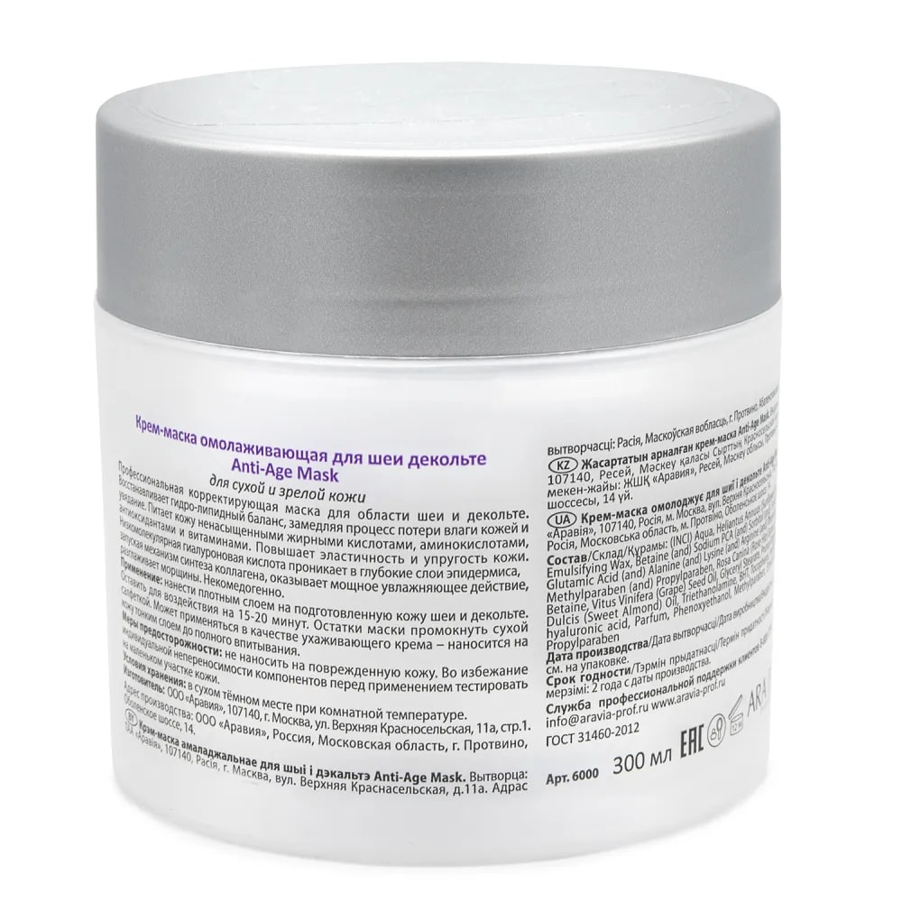 Aravia Крем-маска омолаживающая для шеи и декольте Anti-Age Mask, 300 мл