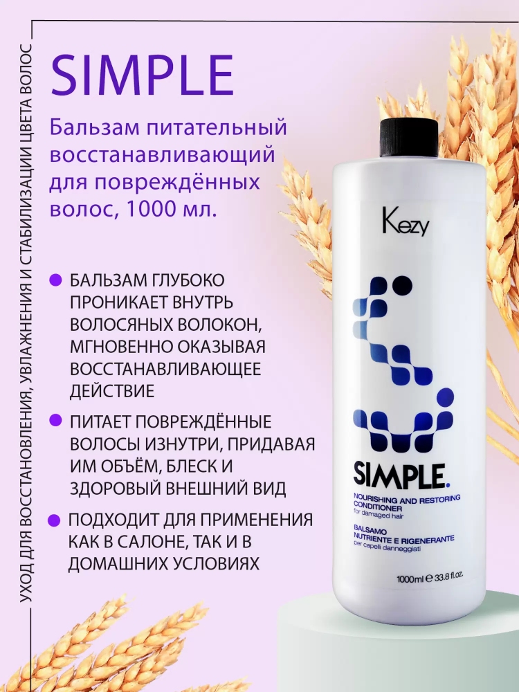 Бальзам питательный восстанавливающий для поврежденных волос, 1000 мл. Simple KEZY