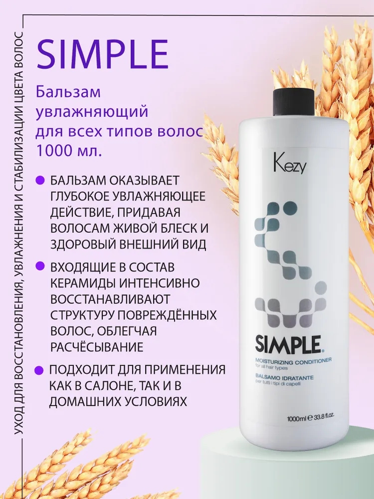 Бальзам увлажняющий для всех типов волос, 1000 мл. Simple KEZY