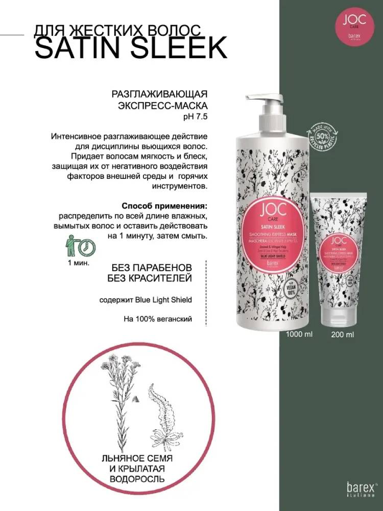 BAREX JOC CARE Разглаживающая экспресс-маска с льняным семенем и крылатой водорослью "SATIN SLEEK" 200мл