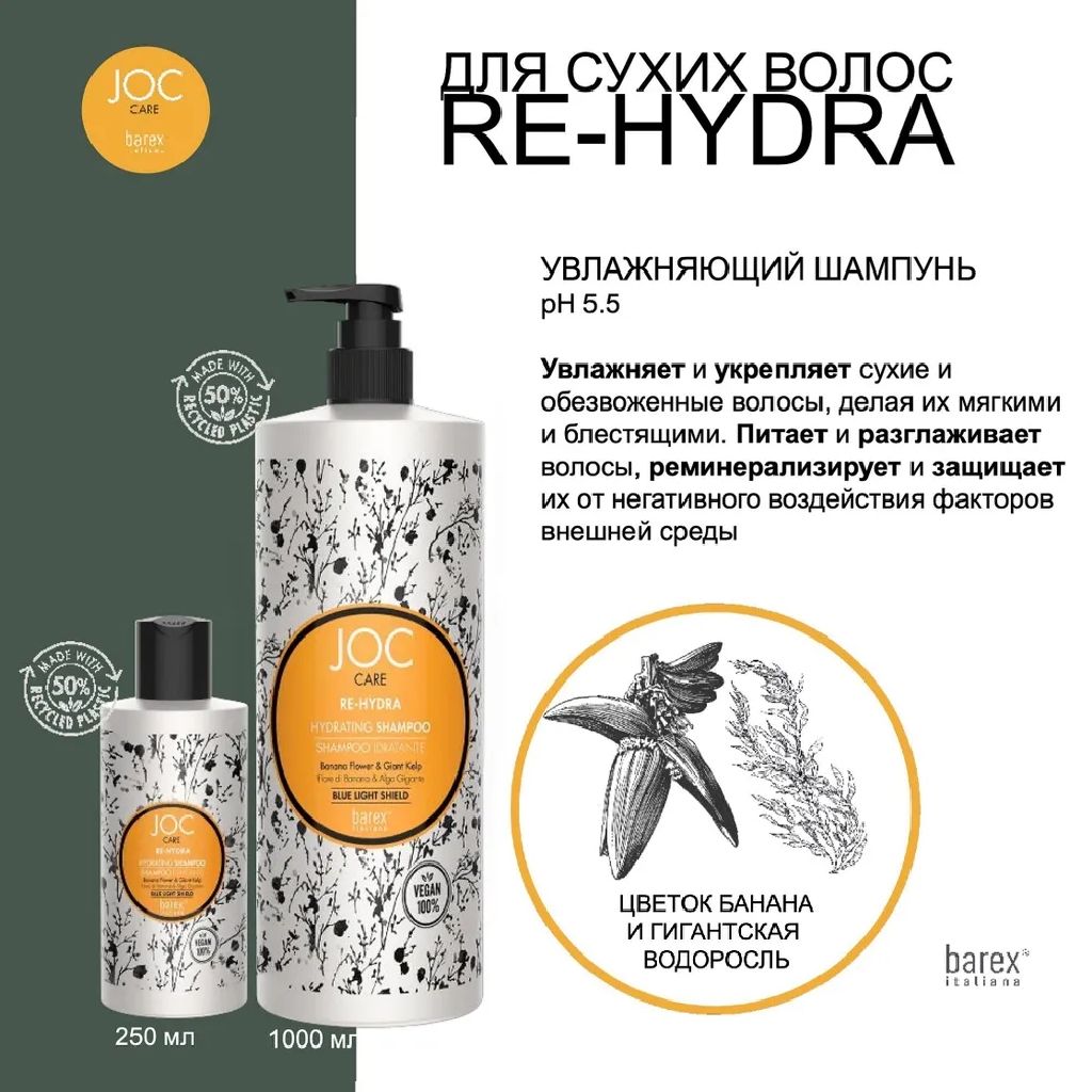 BAREX JOC CARE Увлажняющий шампунь с цветком банана и гигантской водорослью "RE-HYDRA" 250мл
