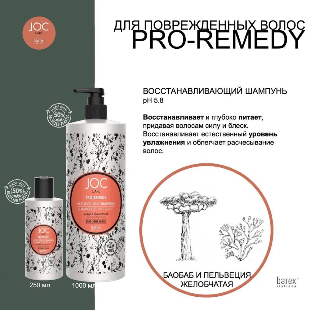 BAREX JOC CARE Восстанавливающий шампунь с баобабом и пельвецией желобчатой "PRO-REMEDY" 250мл