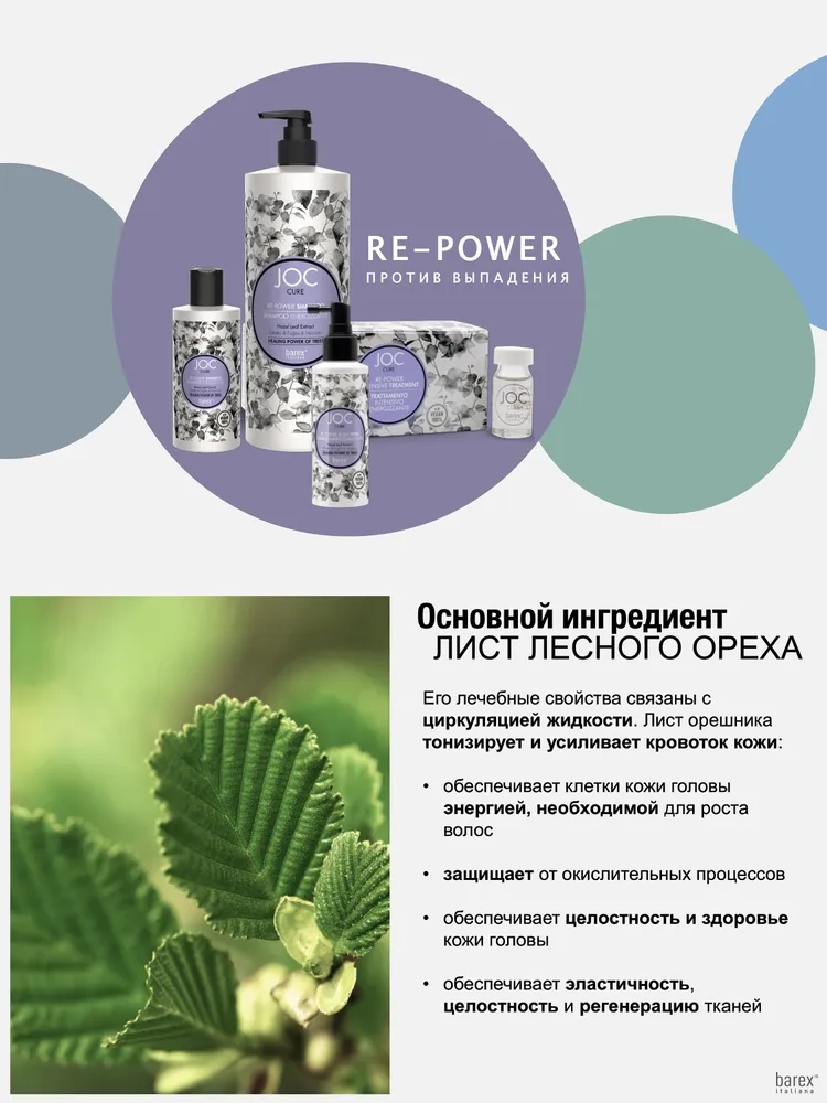 BAREX JOCC URE Шампунь Энергозаряжающий с экстрактом листьев лесного ореха 250мл