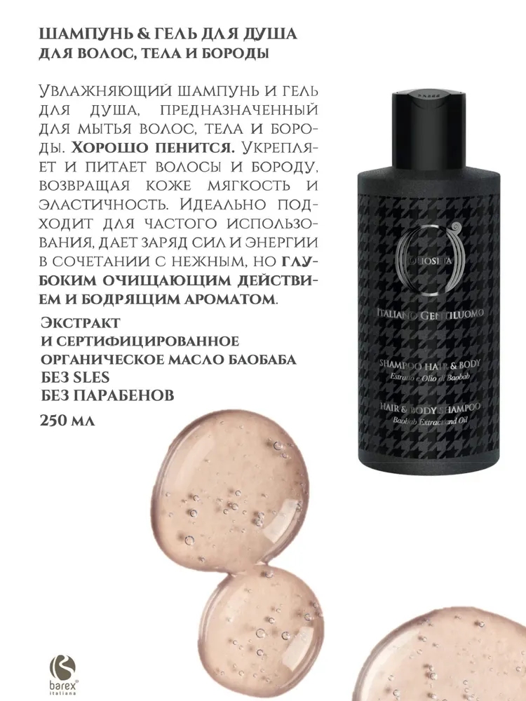 BAREX OLIOSETA GENTILUOMO / Шампунь & гель для душа 250 мл