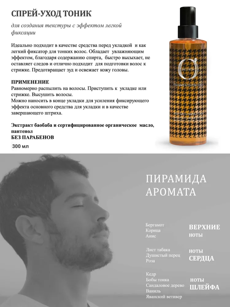 BAREX OLIOSETA GENTILUOMO / Спрей-тоник для престайлинга волос 300 мл