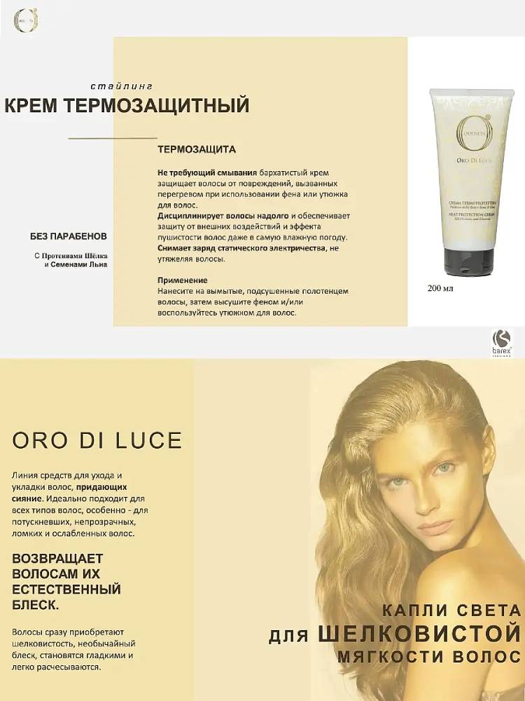 BAREX Olioseta Oro Di Luce Крем термозащитный с протеинами шелка и семенем льна, 200 мл.