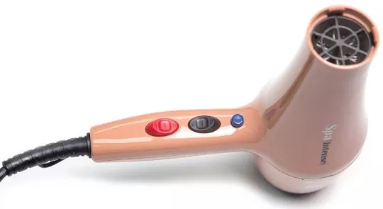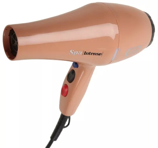 SPA Intense – это инновационный фен мощностью 2300Вт, и с увеличенным ресурсом мотора. Фен SPA Intense оборудован уникальной турбосистемой и выдаёт феноменальный поток воздуха 94 м3 со скоростью почти 150км/ч. В изящный компактный корпус SPA Intense (длина корпуса - 21см, вес – всего 556г) встроен дополнительный внутренний корпус, благодаря которому мотор дополнительно защищен, а поверхность фена не нагревается, что позволяет держать его не только за удобную ручку, но и за сам корпус. Оригинальная конструкция лёгкого корпуса из удоропрочного пластика оснащена встроенной системой шумопоглощения, значительно снижающей уровень внешнего шума фена до всего 75дБА. Фен работает очень тихо, не доставляя дискомфорта ни клиенту, ни мастеру. Роль генератора отрицательных ионов в конструкции фена SPA Intense играет передняя решетка с турмалиновым покрытием. В современном мире уже всем давно известно о пользе воздействия отрицательных ионов на структуру волос: волосы становятся более мягкими и шелковистыми. Турмалиновое п