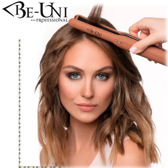 Be-Uni Щипцы-гофре турмалин 15*100мм с терморегулятором, бежевые, 42W