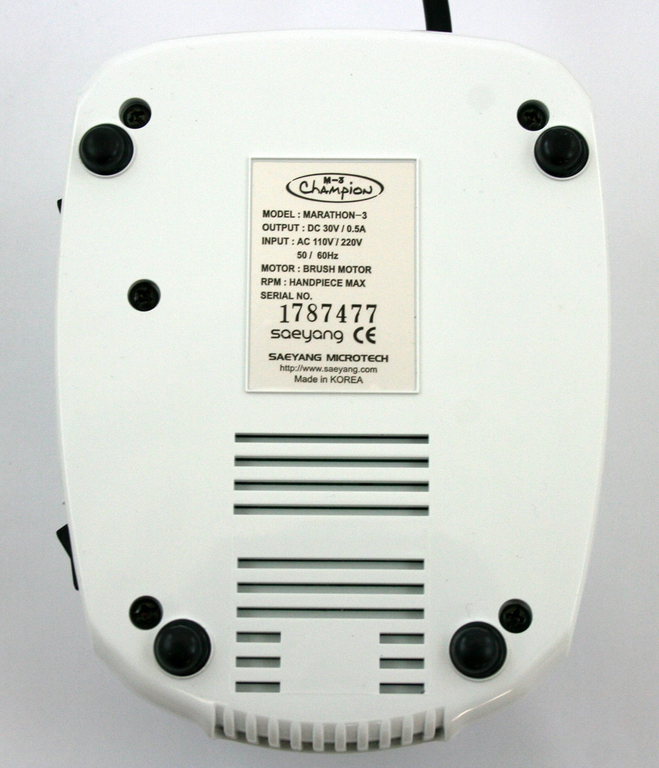 Блок управления Marathon 3 Champion White мощностью 45 Вт, с реверсом. Цвет - Белый. Питание от сети 220В, вилка евростандарт. С защитой от перегрузки. Регулировка скорости - Плавная. Также в комплекте: держатель наконечника (стакан) на корпусе. Без педали. Наконечник-микромотор SDE-H35LSP: Скорость вращения - 1,000-35,000 об/мин; Крутящий момент - 3,2 Нсм; Вес без кабеля - 210 г; Габариты - д 165х29 (мм) Рекомендуемые модели наконечников-микромоторв Marathon: 1)SHE-H37LN; 2SDE-SN20N; 3)SDE-H200; 4)SDE-H35LSP; 5)SDE-H37LSP; 6)SDE-H37SP.