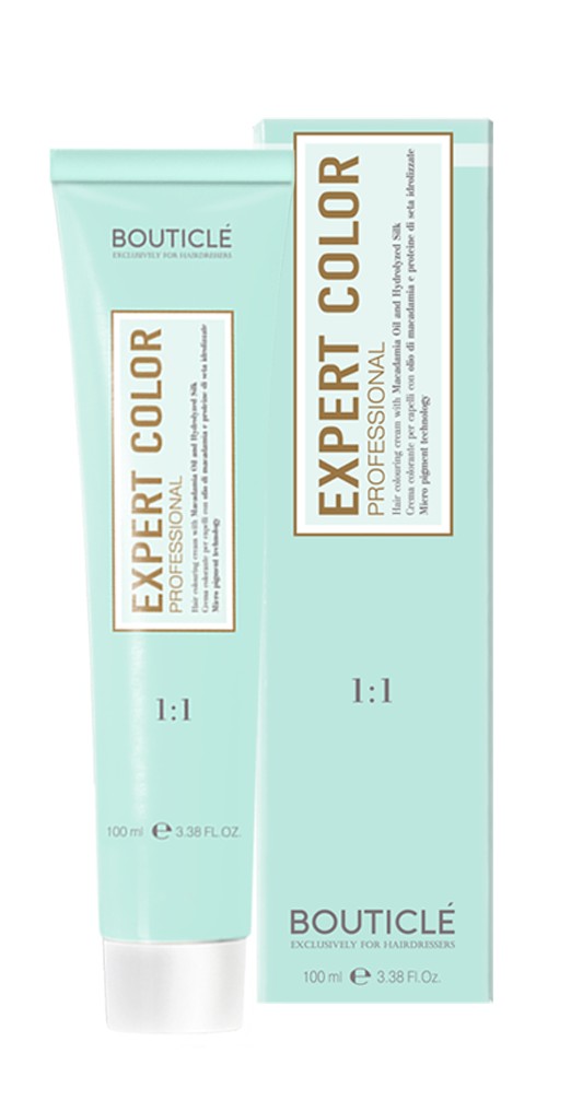 Bouticle Expert Color Перманентный крем-краситель для волос с пониженным содержанием аммиака на основе восстанавливающего комплекса на основе масла макадамии и гидролизованных протеинов шелка. Технология Micro Pigment Technology обеспечивает микро-пигментам красителя высокую проникающую способность при минимальном раскрытии кутикулярного слоя без повреждения структуры волос. Гарантирует блеск, стойкий цвет, осветление до 5 уровней и 100% покрытие седых волос. Великолепное кондиционирование волос и пластичное нанесение красителя. Результат – стойкий цвет и ухоженные волосы. Активные ингредиенты: Масло макадамии, гидролизованные протеины шелка.