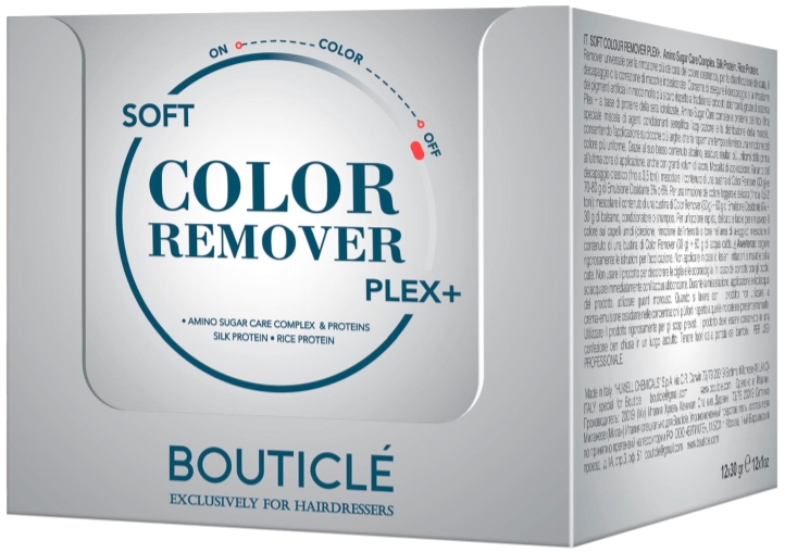 - декапирование до 3,5 тонов: Color Remover (30г) + 70-80 г 3% (6%); - до 1,5-2 тонов: Color Remover (30г) + 60 г 6% + 30г бальзама, кондиционера или шампуня; - легкая коррекция цветового направления (интенсивности): Color Remover (30г) + 60 г теплой воды. РЕКОМЕНДАЦИИ ЭКСПЕРТА Наносите декапирующую смесь на волосы, начиная с концов или самых темных (перегруженных пигментом участков), работая, как с классическим декапированием. Нанесение следует начинать с затылочной зоны, затем нанести продукт на теменную и височно-боковые зоны. Эмульгируйте при нанесении для лучшего распределения. Выдерживайте продукт на волосах до достижения необходимого результата, но не более 60 минут. Если желаемый результат не был достигнут, а средство проработало на волосах 60 минут, удалите продукт с помощью одноразового полотенца и нанесите свежеприготовленную смесь. Процедуру повторяйте до достижения необходимого результата, но обязательно в процессе проводите тест на эластичность, особенно при работе с ослабленными или поврежден