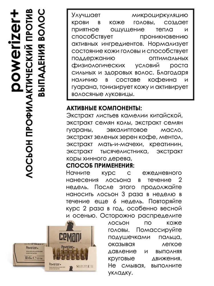 CEMANI Лосьон "Powerizer+" - профилактический против выпадения волос (60амп/уп.) - 1амп*8мл