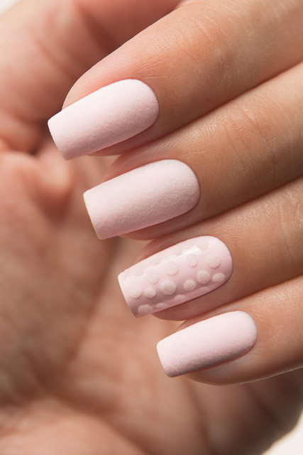 «Белый песок» состоит из мелких матовых частиц молочно-белого оттенка. Создаёт на ногтях эффект песочной фактуры. Способ применения: покрыть ногти гель-лаком или гелем полностью или сделать роспись и равномерно нанести пигмент на непросушенное покрытие. Просушить в лампе, прибавляя к обычному времени сушки 30 секунд. Удалить излишки с помощью кисти. Пигмент можно также смешивать с гель-лаками и другими пигментами.