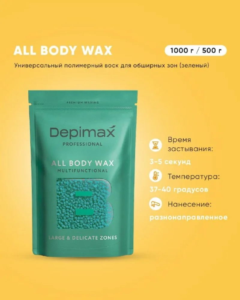 DEPIMAX ALL BODY WAX Воск полимерный универсальный для обширных и деликатных зон, зеленый, 1 кг