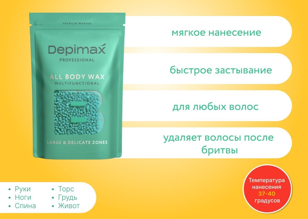 DEPIMAX ALL BODY WAX Воск полимерный универсальный для обширных и деликатных зон, зеленый, 100 гр.
