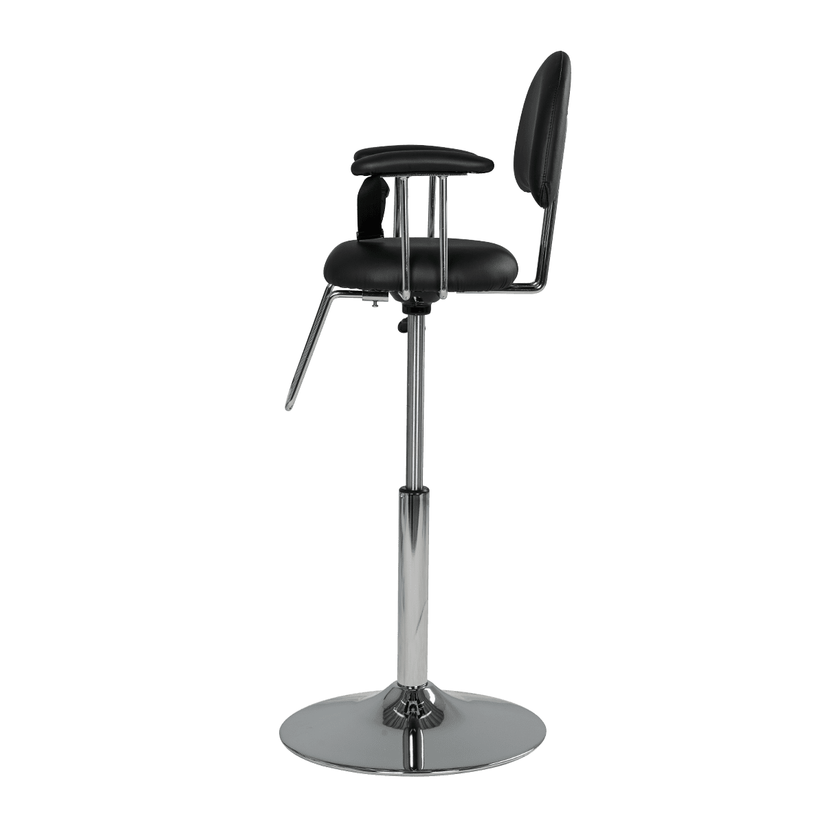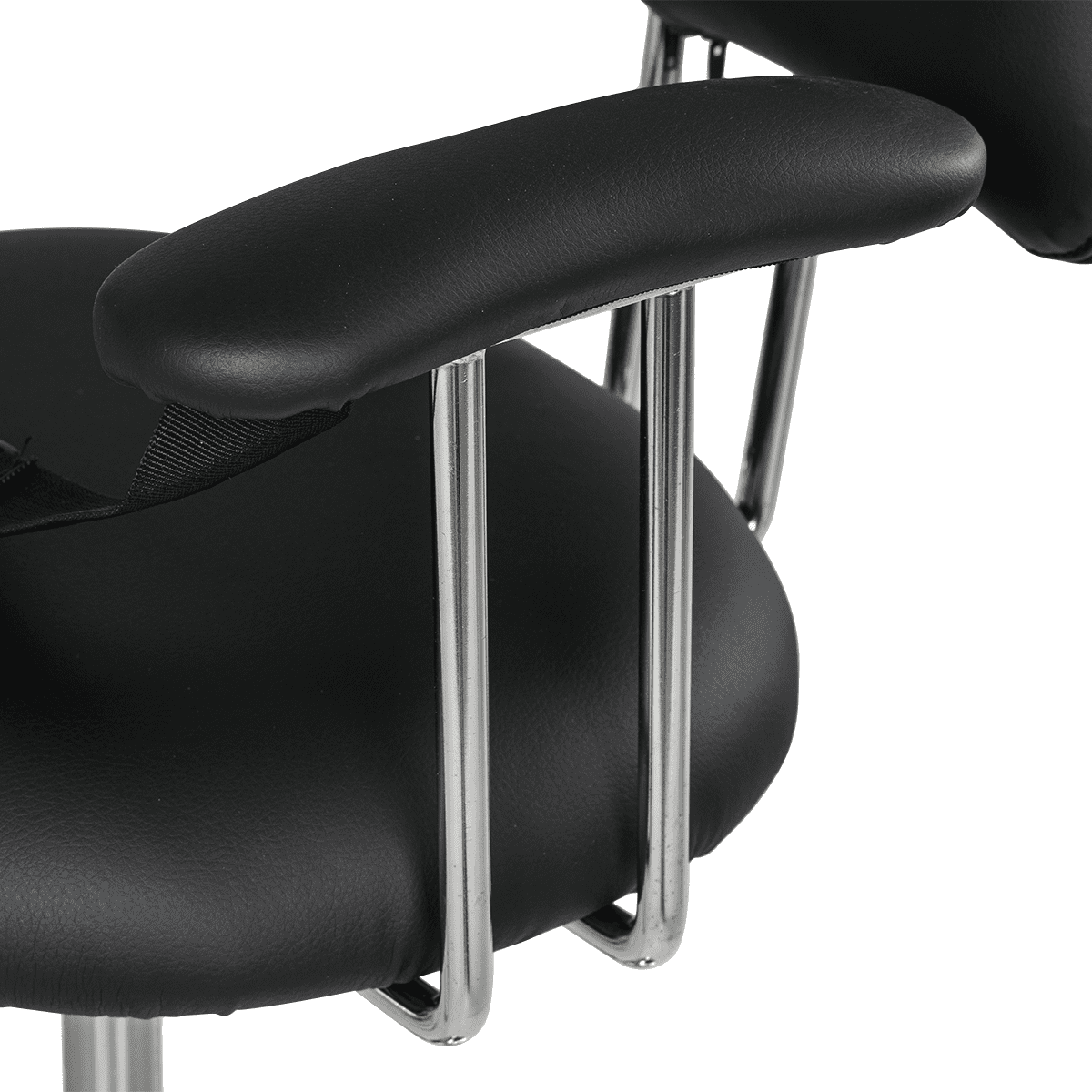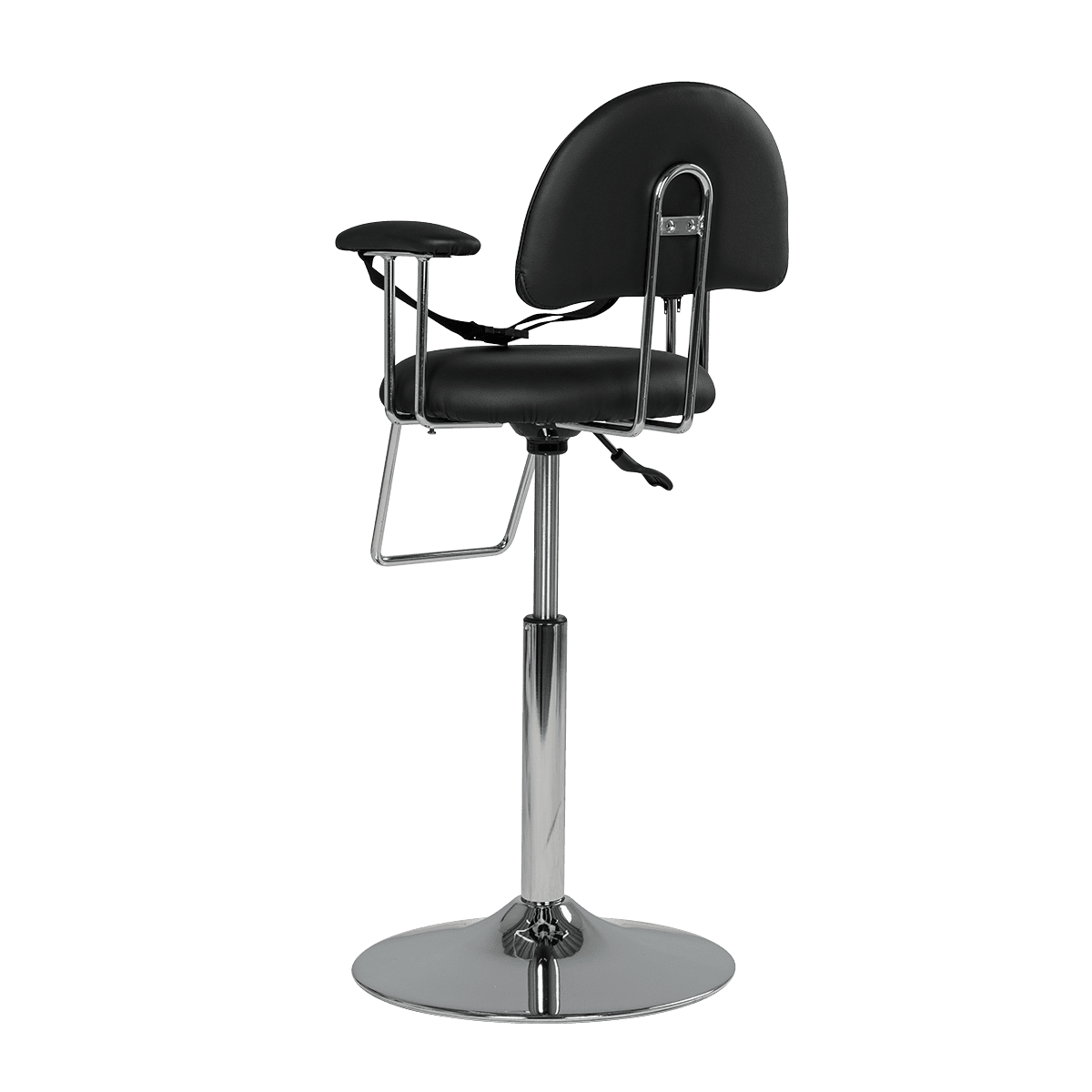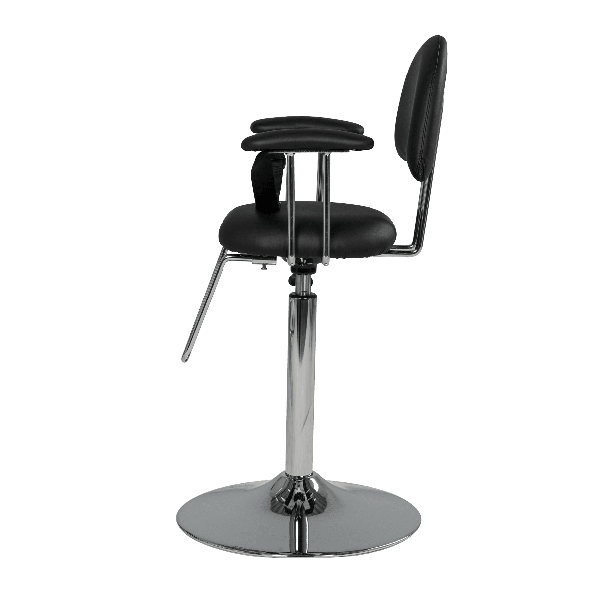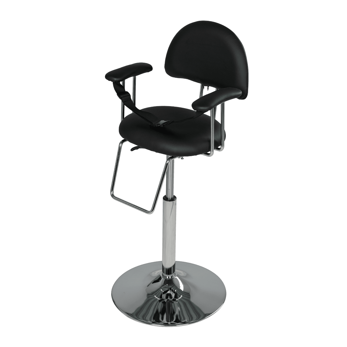 Стул детский МД-910 Производитель: Китай. Комплектация: каркас на стальной круглой базе, ремни безопасности, сиденье, спинка, подлокотники с накладками, подножка. Характеристики: Каркас: стальной на круглом основании с резиновой накладкой. Обивка: эластичный поролон, обшитый фирменной экокожей Подлокотники: металлические с накладками из экокожи. Подножка: прочная сталь. Тип подъёмного механизма: пневматика. Вращение вокруг оси: на 360 градусов. Стул детский МД-910 – функциональное оборудование для обслуживания юных клиентов. С такой мебелью для барбершопа станет возможным обслуживание детей в собственных стильных креслах. Широкое посадочное место и подлокотники позволят комфортно расположиться на время проведения процедур. Надежный подъемный механизм позволит мастеру подобрать оптимальную высоту во время работы. В качестве обивки мягких элементов использована экокожа. Качественный материал не впитывает влагу и грязь, а также не вызывает аллергии. Наполнитель – упругий поролон, не остав