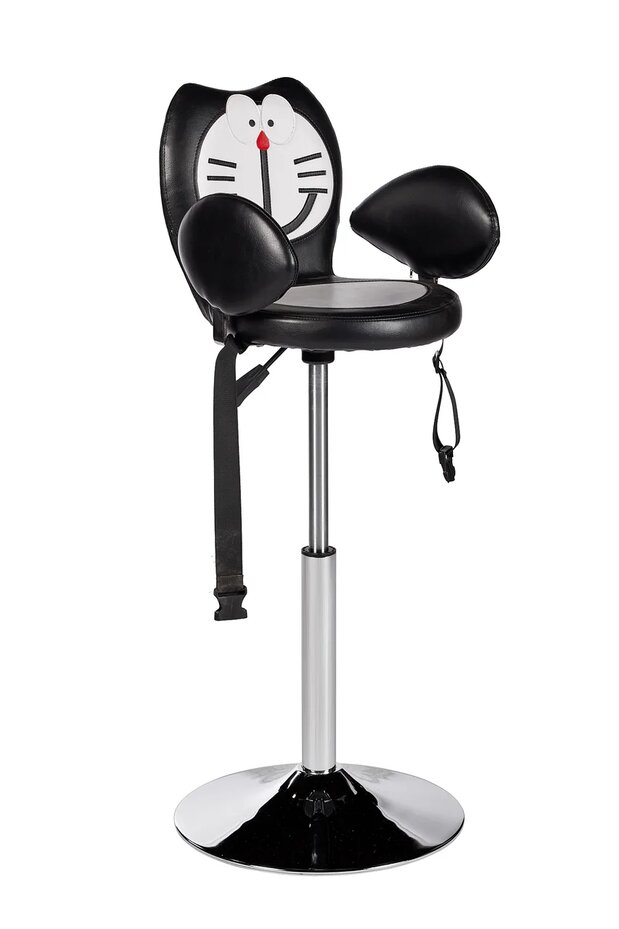Яркое детское парикмахерское кресло в виде Кота. На пневматике, хромовый диск. Оснащено подлокотниками, подножкой, ремнем безопасности. Цвет: красный, синий,черный. В НАЛИЧИИ