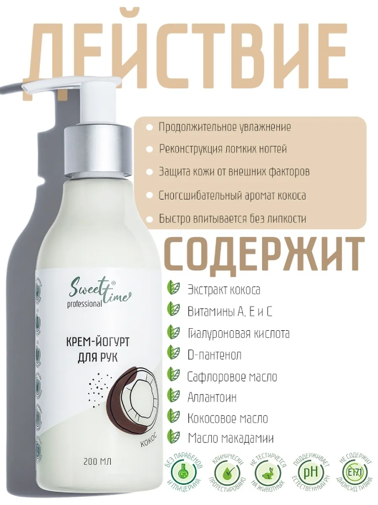 DOMIX SWEET TIME Крем-йогурт для рук Кокос 200 мл.
