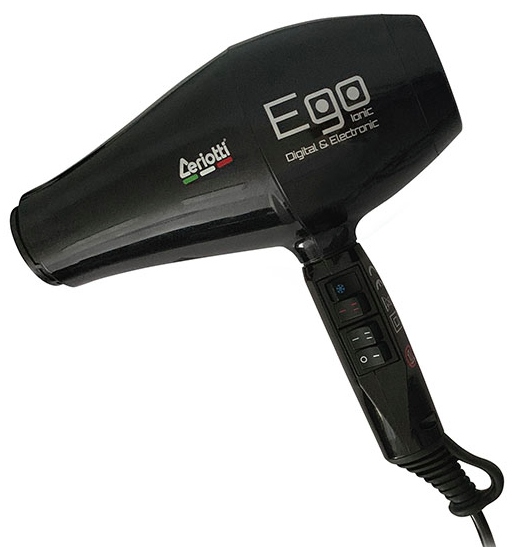 Фен CERIOTTI Ego Digital Ionic черный с цифровым мотором, 2300 Вт., 3 насадки, вес 420 гр.
