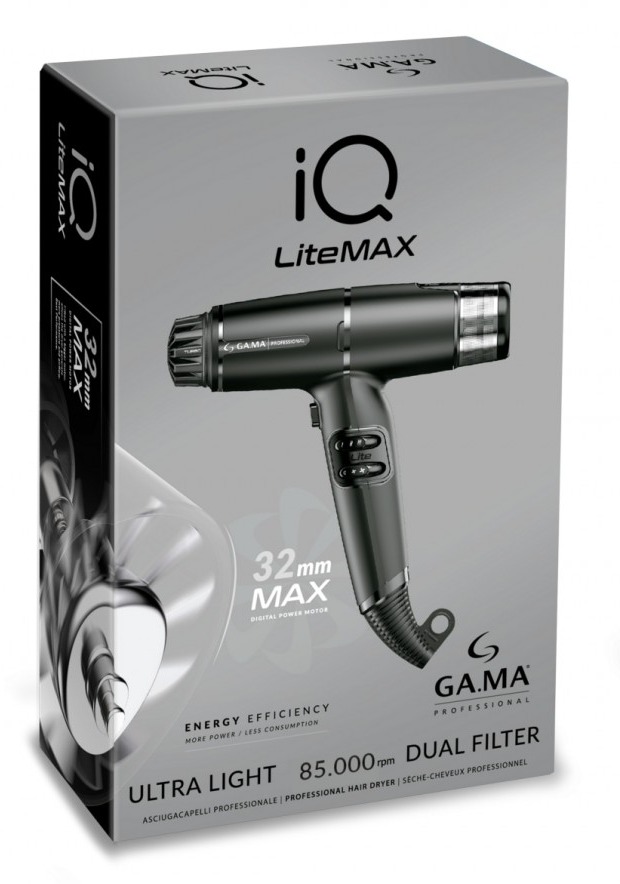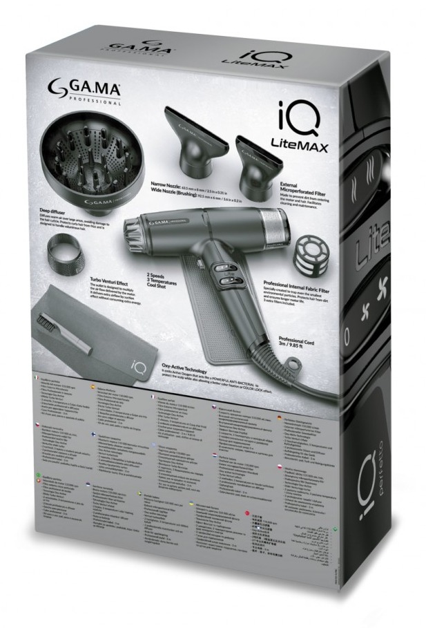 GA.MA Электрофен IQ LITE MAX цвет черный, 2 насадки+диффузор, 1700 Вт., вес 343 гр.