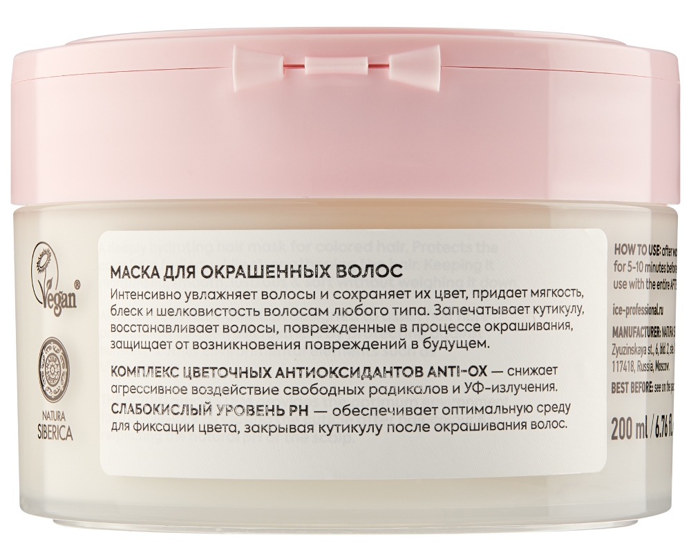 МАСКА ДЛЯ ОКРАШЕННЫХ ВОЛОС Интенсивно увлажняет волосы и сохрвняет их цвет, придает мягкость, блеск и шелковистость волосам любого типа. Запечатывает кутикулу, восстанавливает волосы, поврежденные в процессе окрашивания, защищает от возникновения повреждений в будущем. ЦВЕТОЧНЫХ АНТИОКСИДАНТОВ ANTI-OX — снижает агрессивное воздействие свободных радикалов и УФ-излучения. СЛАБОКИСЛЫЙ УРОВЕНЬ PH — обеспечивает оптимальную среду для фиксации цвета, закрывая кутикулу после окрашивания волос.