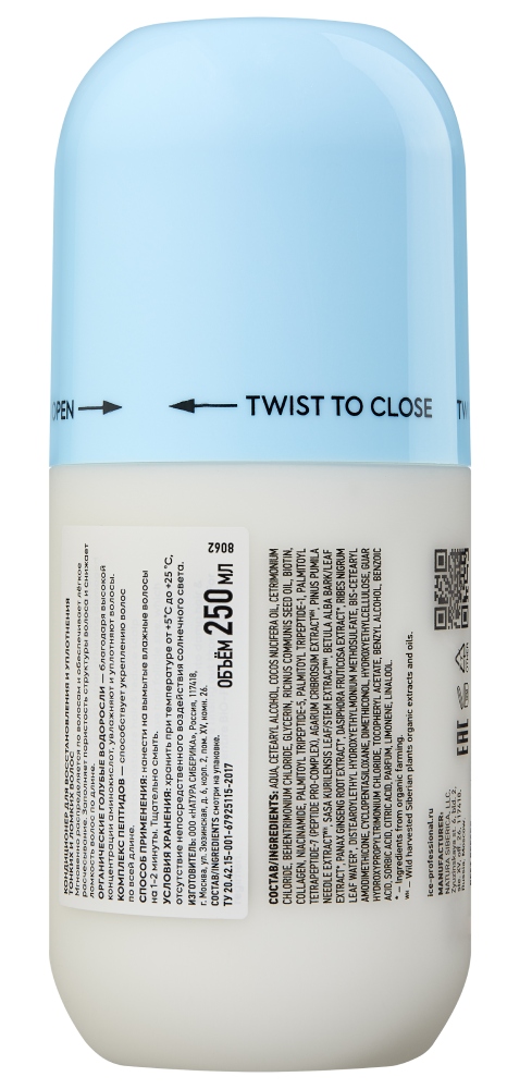 КОНДИЦИОНЕР ДЛЯ ВОССТАНОВЛЕНИЯ И УПЛОТНЕНИЯ ТОНКИХ И ЛОМКИХ ВОЛОС Мгновенно распределяется по волосам и обеспечивает лёгкое расчесывание. Заполняет пористость структуры волоса и снижает ломкость волос по длине. ОРГАНИЧЕСКИЕ ГОЛУБЫЕ ВОДОРОСЛИ — благодаря высокой концентрации аминокислот, увлажняют и уплотняют волосы. КОМПЛЕКС ПЕПТИДОВ — способствует укреплению волос по всей длине.