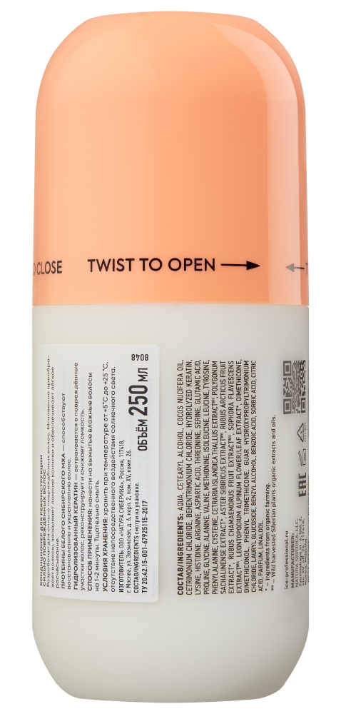 КОНДИЦИОНЕР ДЛЯ РЕКОНСТРУКЦИИ СИЛЬНО ПОВРЕЖДЁННЫХ ВОЛОС Разработан для сильно повреждённых волос. Мгновенно преображает волосы, запаивает ломкие кончики и обеспечивает лёгкое расчёсывание. ПРОТЕИНЫ БЕЛОГО СИБИРСКОГО МХА — способствуют восстановлению и укреплению волос. РАСТИТЕЛЬНЫЙ КЕРАТИН — встраивается в повреждённые участки волос, реконструирует и снижает ломкость.