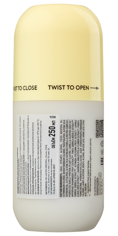 КОНДИЦИОНЕР ДЛЯ ПИТАНИЯ И БЛЕСКА ПОРИСТЫХ И ТУСКЛЫХ ВОЛОС Помогает превратить сухие локоны в гладкие и блестящие. Мгновенно питает и запечатывает кутикулу. ОРГАНИЧЕСКОЕ МАСЛО КАМЕЛИИ — придаёт мягкость, сияние, делает волосы послушными. БИОЛИПИДНЫЙ КОМПЛЕКС — восстанавливает липидный барьер и защищает волосы от повреждений.