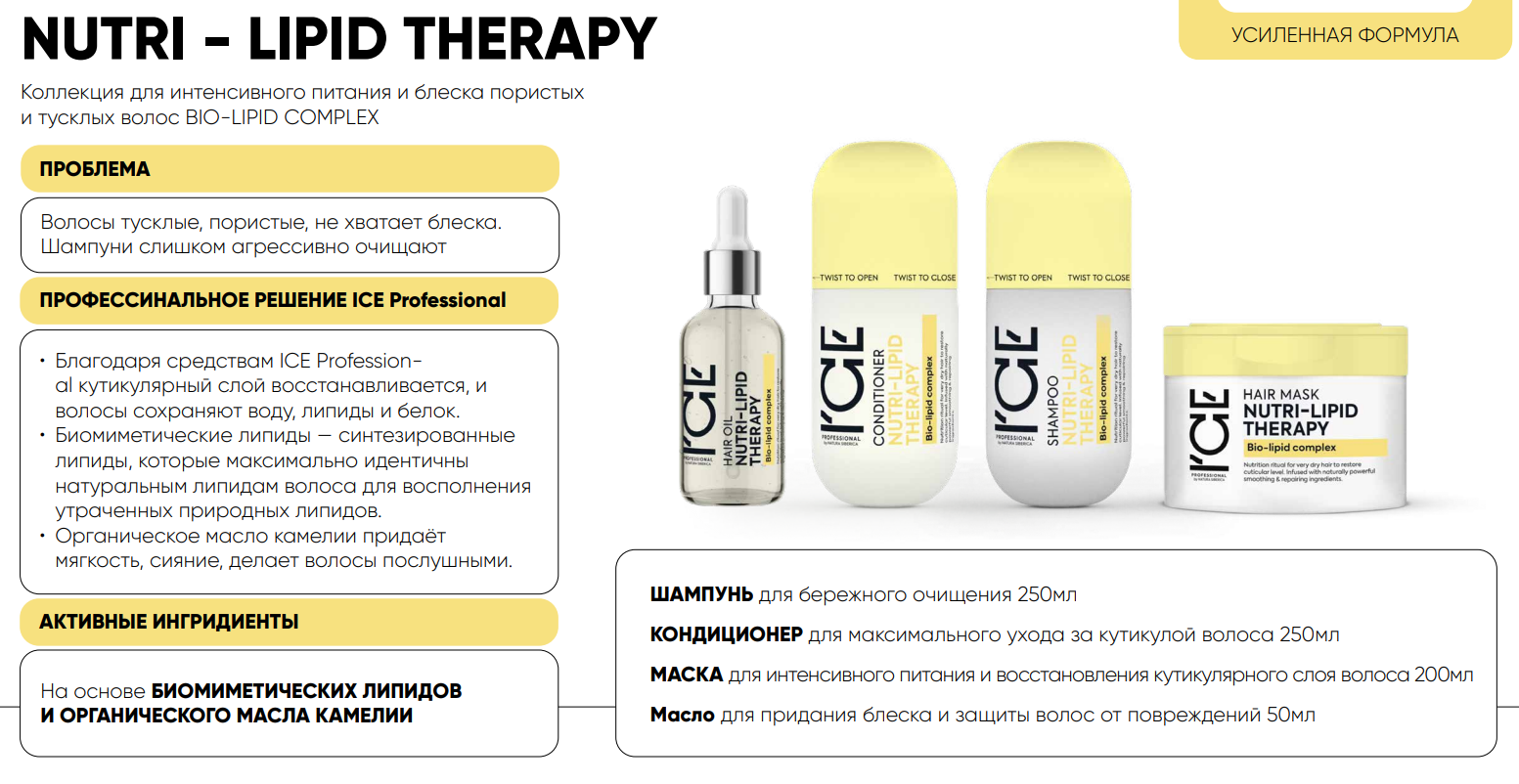 ICE Professional NUTRI-LIPID THERAPY Масло для питания и блеска волос, 50 мл.