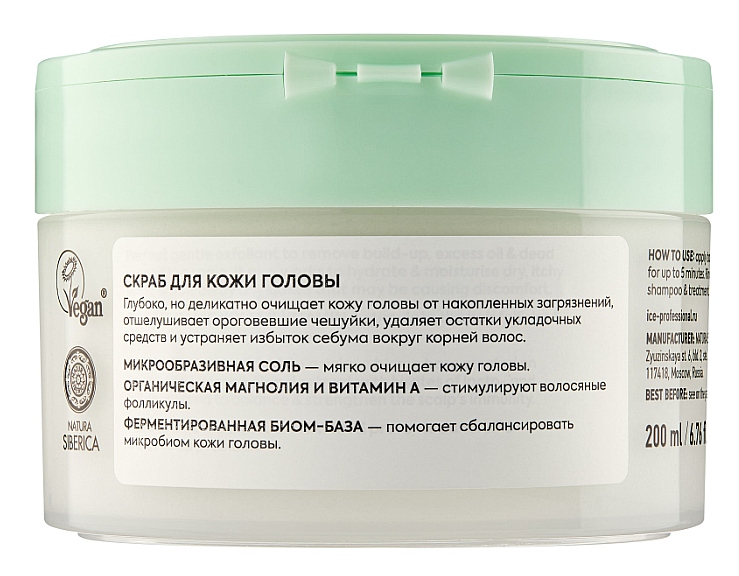 СКРАБ ДЛЯ КОЖИ ГОЛОВЫ Глубоко, но деликатно очищает кожу голову от накопленных загрязнений, отшелушивает ороговевшие чешуйки, удаляет остатки укладочных средств и устраняет избыток себума вокруг корней волос. МИКРООБРАЗИВНАЯ СОЛЬ - мягко очищает кожу головы. ОРГАНИЧЕСКАЯ МАГНОЛИЯ И ВИТАМИН А — стимулируют волосяные фолликулы и укрепляют структуру волос по длине. ФЕРМЕНТИРОВАННАЯ БИОМ-БАЗА — помогает сбалансировать микробиом кожи головы.