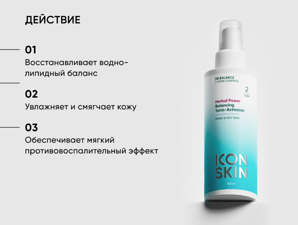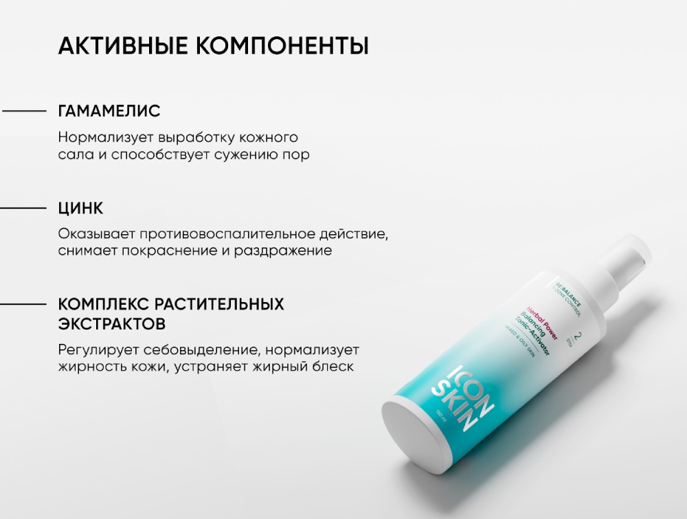 ICON SKIN RE:BALANCE Балансирующий тоник-активатор для комбинированной и жирной кожи HERBAL POWER 150 мл