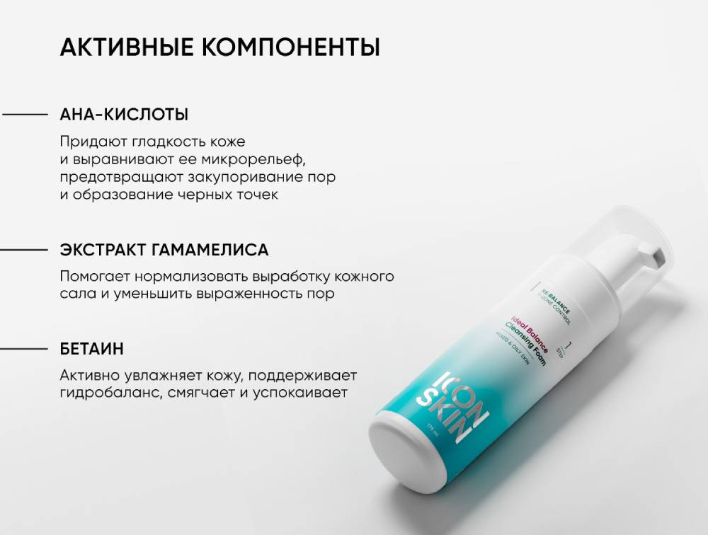 ICON SKIN RE:BALANCE Очищающая пенка для умывания для комбинированной и жирной кожи IDEAL BALANCE 175 мл