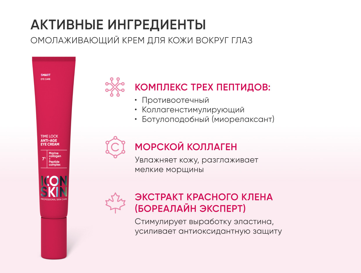 ICON SKIN SMART Омолаживающий крем для кожи вокруг глаз с коллагеном и пептидами TIME LOCK 20 мл