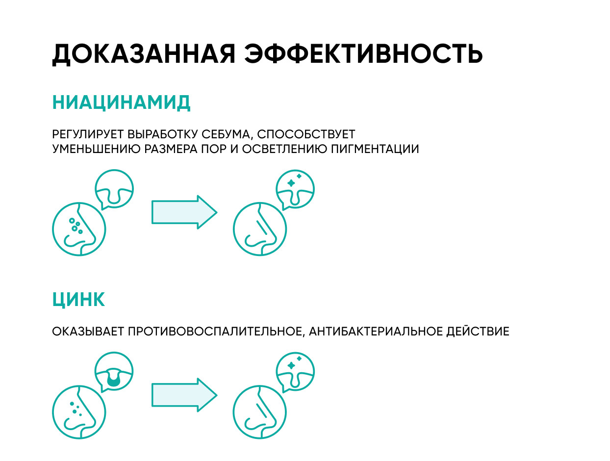 Сыворотка-концентрат содержит 12% ниацинамида и 1% цинка, которые оказывают комплексный себорегулирующий и противовоспалительный эффекты. Сыворотока заметно уменьшает жирный блеск, воспаления и раздражения. Регулирует выработку себума, сокращает выраженность пор, улучшает цвет лица. Увлажняющий комплекс дополнительно смягчает кожу и поддерживает правильный гидробаланс жирной и комбинированной кожи. Активная молекула экстракта солодки и пробиотик укрепляют иммунитет кожи и ее защитные функции, снижая агрессивное воздействие окружающей среды. Кожа становится более ровной и гладкой. Сыворотка имеет приятную гелевую текстуру, быстро впитывается, не оставляет ощущения липкости. Используйте концентрат отдельно или добавляйте в увлажняющий крем. SMART – это система средств направленного действия для всех типов кожи. В основе формул высокие концентрации активных компонентов с клинически доказанной эффективностью. РЕЗУЛЬТАТ: гладкая кожа и ровный тон лица без жирного блеска