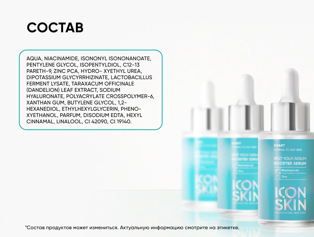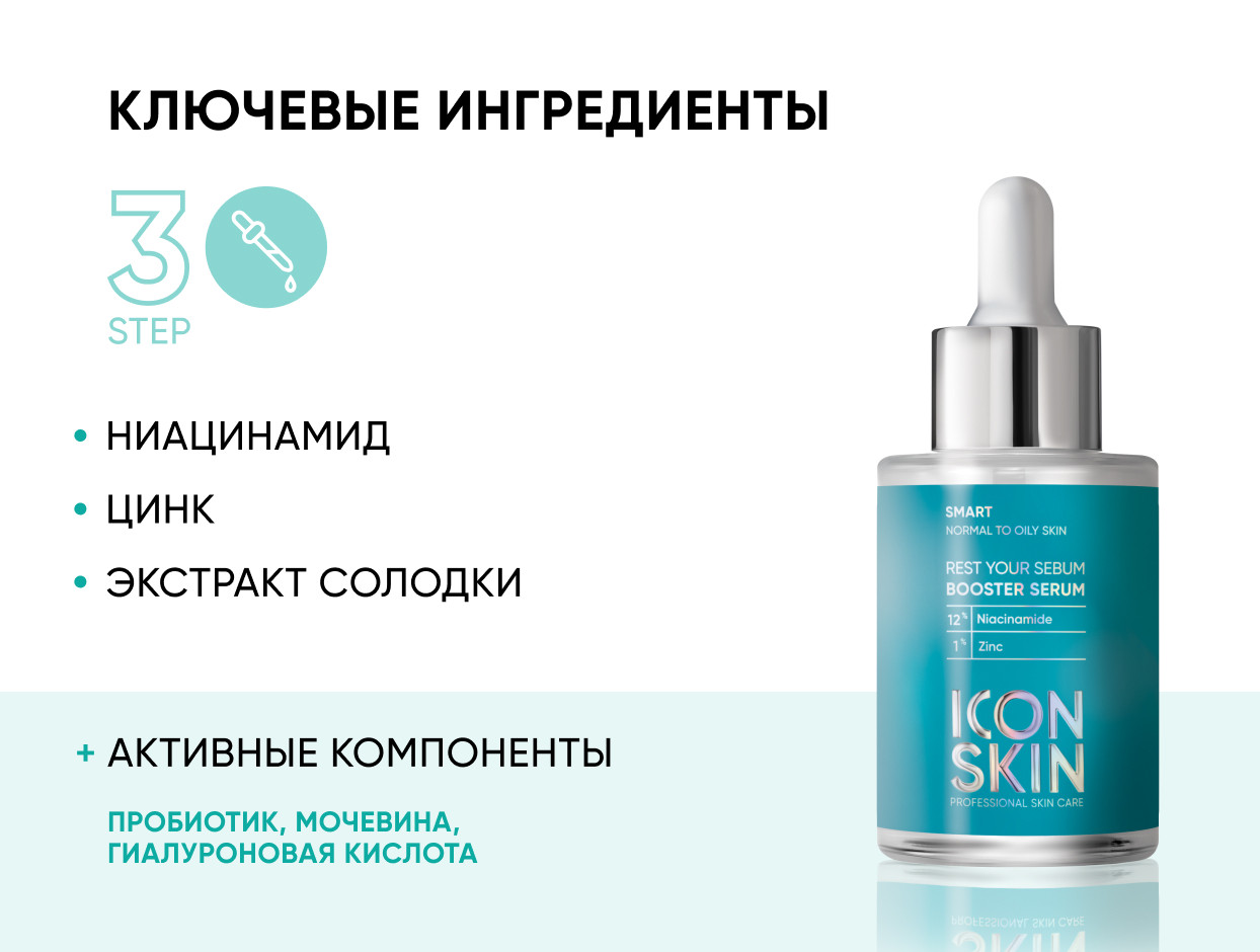 ICON SKIN SMART Себорегулирующая сыворотка-концентрат с ниацинамидом REST YOUR SEBUM 30 мл